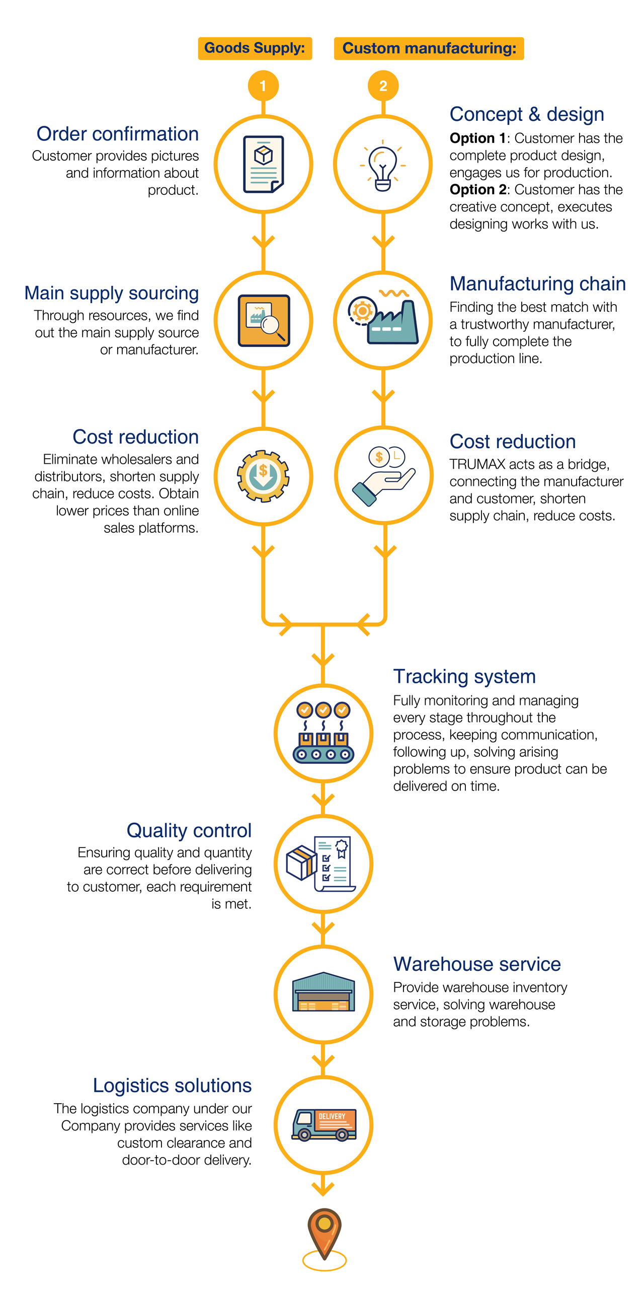 Our services cover these industries: Electronics, medical, building materials, furniture, software equipment and various retail.